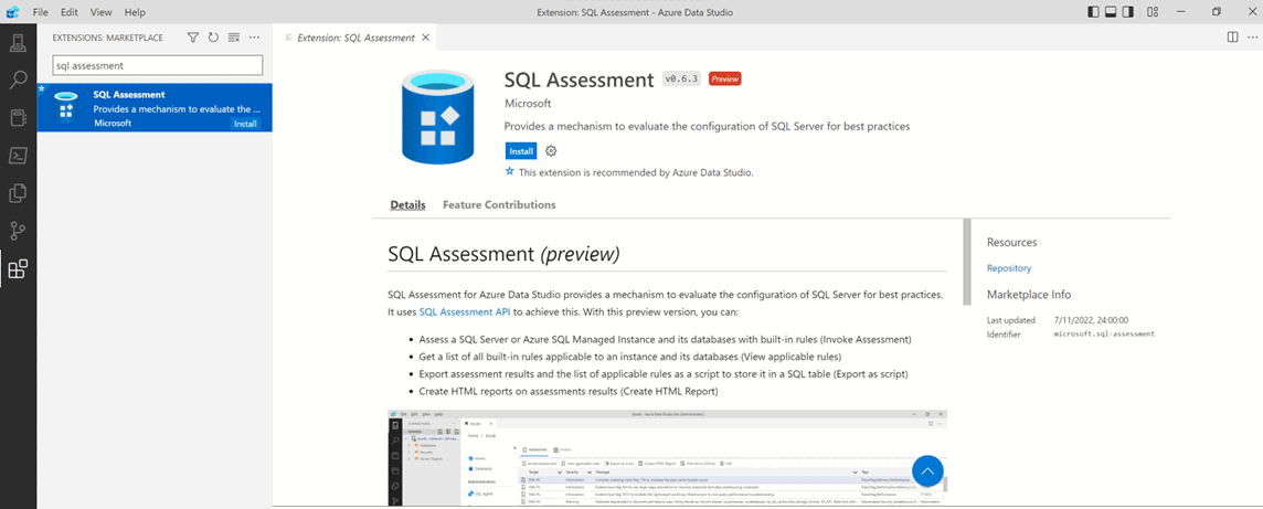Extension SQL Assessment pour Azure Data Studio (préversion)