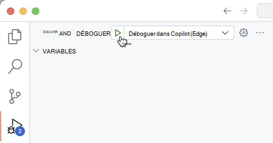 Dans la liste des configurations, choisissez Déboguer dans Copilot (Edge) et appuyez sur le bouton de lecture pour démarrer le débogage.