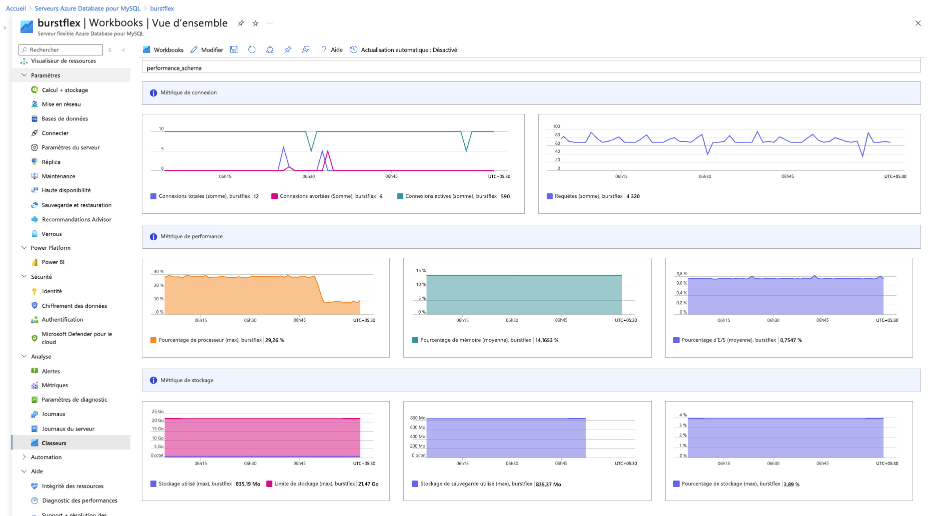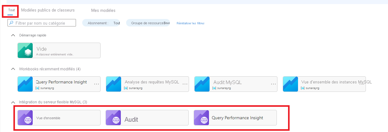 Dans le Portail Azure, dans le volet gauche, sous Surveillance pour votre instance de serveur flexible Azure Database pour MySQL, sélectionnez Classeurs.