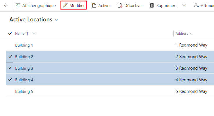 Cliquez sur Emplacements, sélectionnez trois emplacements, puis cliquez sur Modifier.