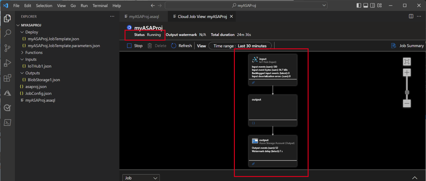 ジョブが正常に開始されると、ジョブの状態が [実行中] に変わります。 ASA ジョブの実行方法を示す論理図を確認できます。