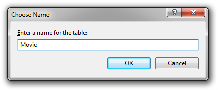 完了したら、ツール バーの [保存] アイコンをクリックするか、メニューから [ファイル] | [保存] を選択し、テーブルに "Movie" (単数形) という名前を付けます。 データベースとテーブルが作成されました。