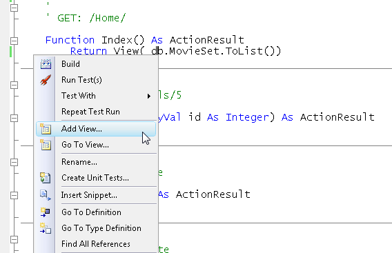 ![コード エディターのスクリーンショット。[ビューの追加] が選択された右クリック ドロップダウン ボックスが表示されています。](create-a-movie-database-application-in-15-minutes-with-asp-net-mvc-vb/_static/image9.jpg)