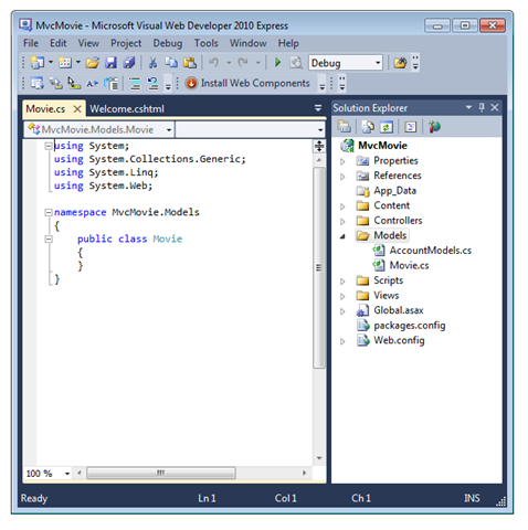 このセクションでは、データベースのムービーを管理するためのクラスをいくつか追加します。 これらのクラスは ASP.NET MVC アプリケーションの "モデル" 部分になります。