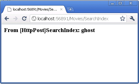 Return "<h3> From [HttpPost]SearchIndex: " & searchString & "</h3>"