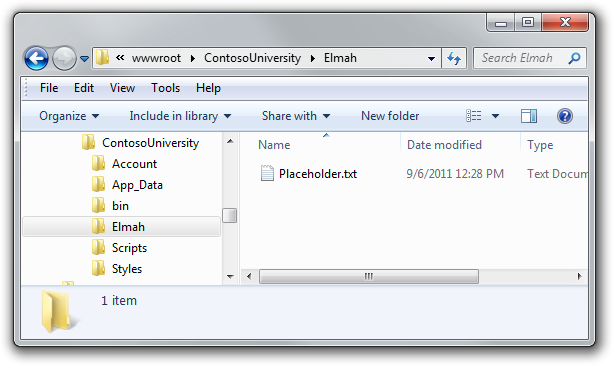 プレースホルダー ファイルのみが含まれる Elmah フォルダーが存在することを確認します。