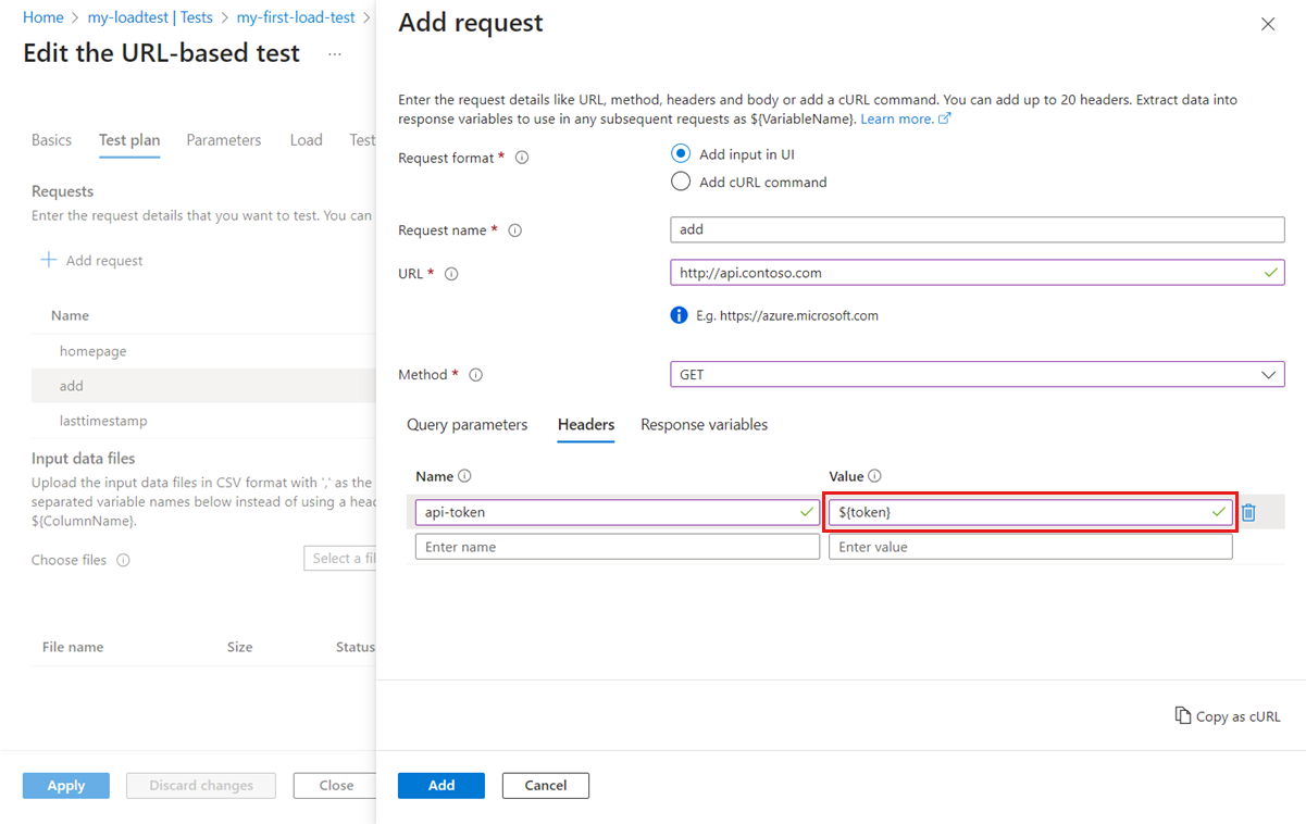 curl --request GET 'http://www.contoso.com/customers?version=1' --header 'api-token: my-token'[適用] を選択してロード テストを保存します。