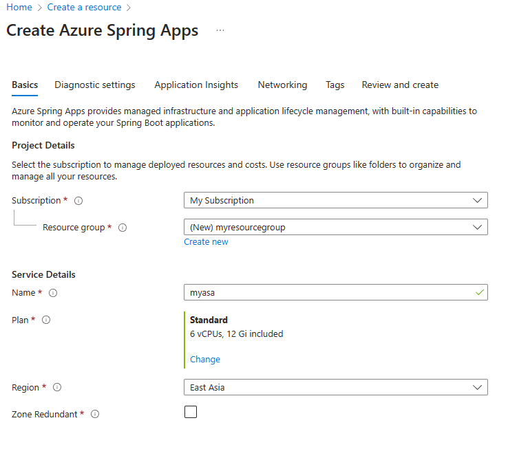 3.2. Azure Spring Apps インスタンスを作成する