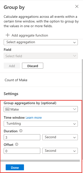 carsummaryという名前を付け、[作成] を選択します。イベント ハブの構成ページで、次の設定を確認し、[接続] を選択します。