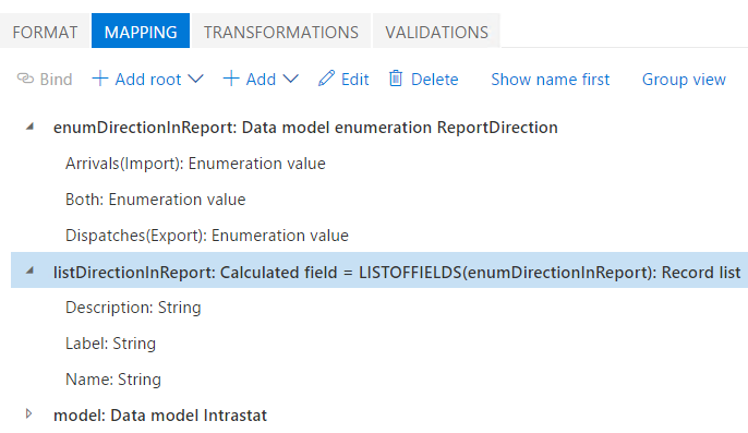 計算済フィールド データ ソース型を使用して、enumType データ モデル列挙に対して enumType_de および enumType_deCH データ ソースを構成します。