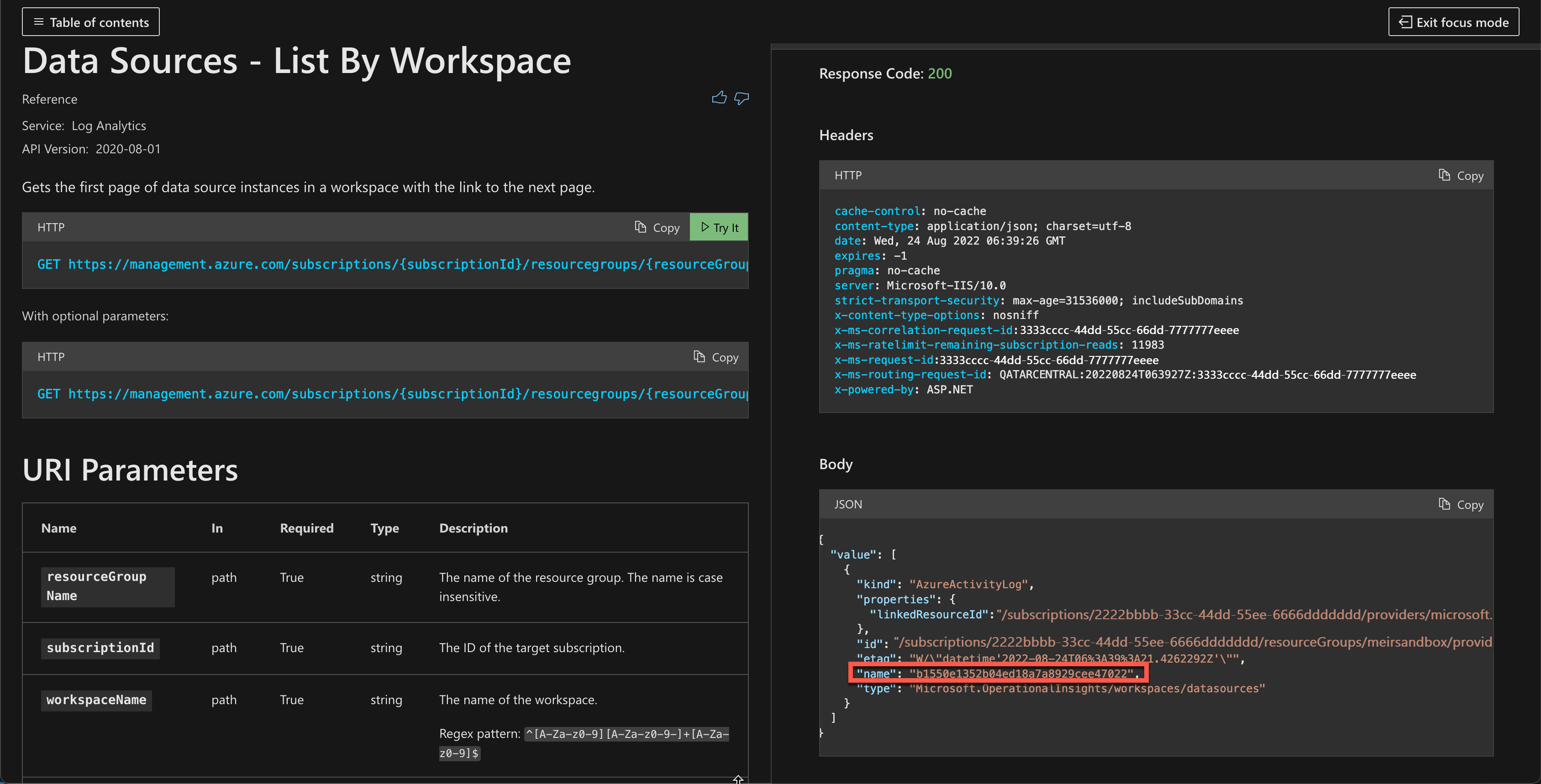 Data Sources - List By Workspace API を使用してワークスペースに接続されているすべてのデータ ソースを一覧表示し、