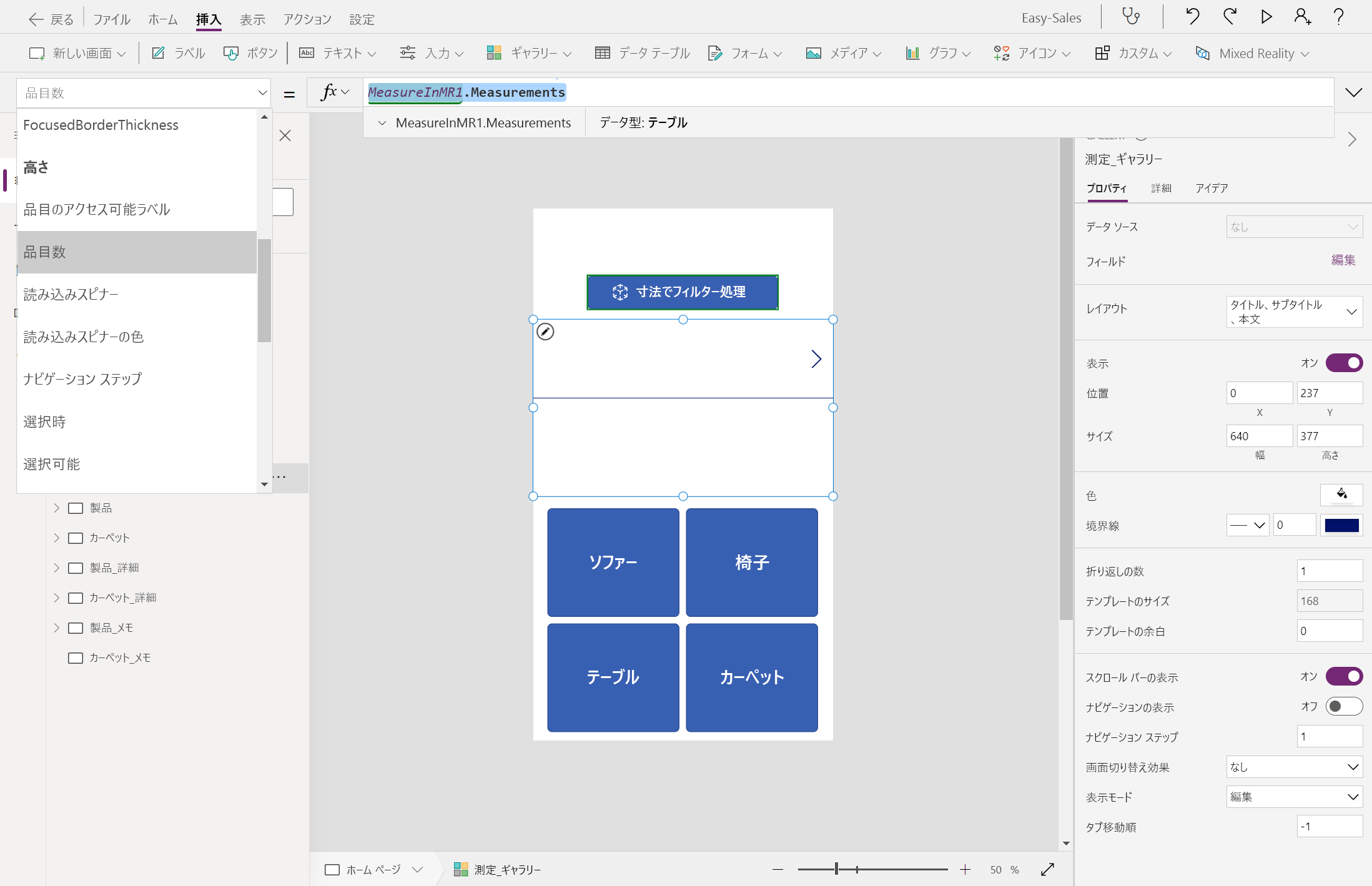次の行を追加して、Measure_galleryの Items プロパティを構成します。