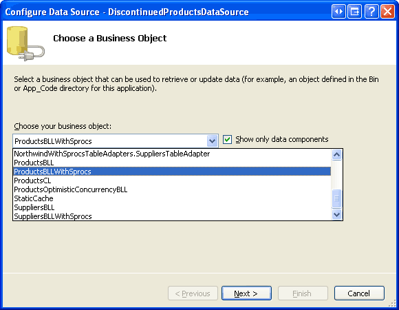 그러면 명명 GetProductsWithPriceGreaterThan 된 Northwind 데이터베이스에 새 저장 프로시저가 만들어지고 관리되는 메서드 GetProductsWithPriceGreaterThan (클래스 StoredProcedures에 있는 어셈블리 ManuallyCreatedDBObjects에 있는)와 연결됩니다.