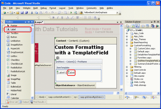 그림 6: TemplateField의 ItemTemplate에 FirstName 레이블 웹 컨트롤 추가(전체 크기 이미지를 보려면 클릭)
