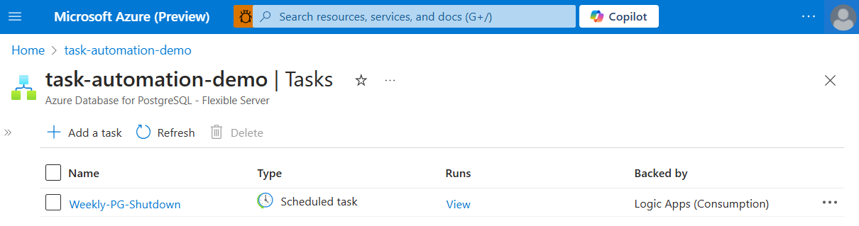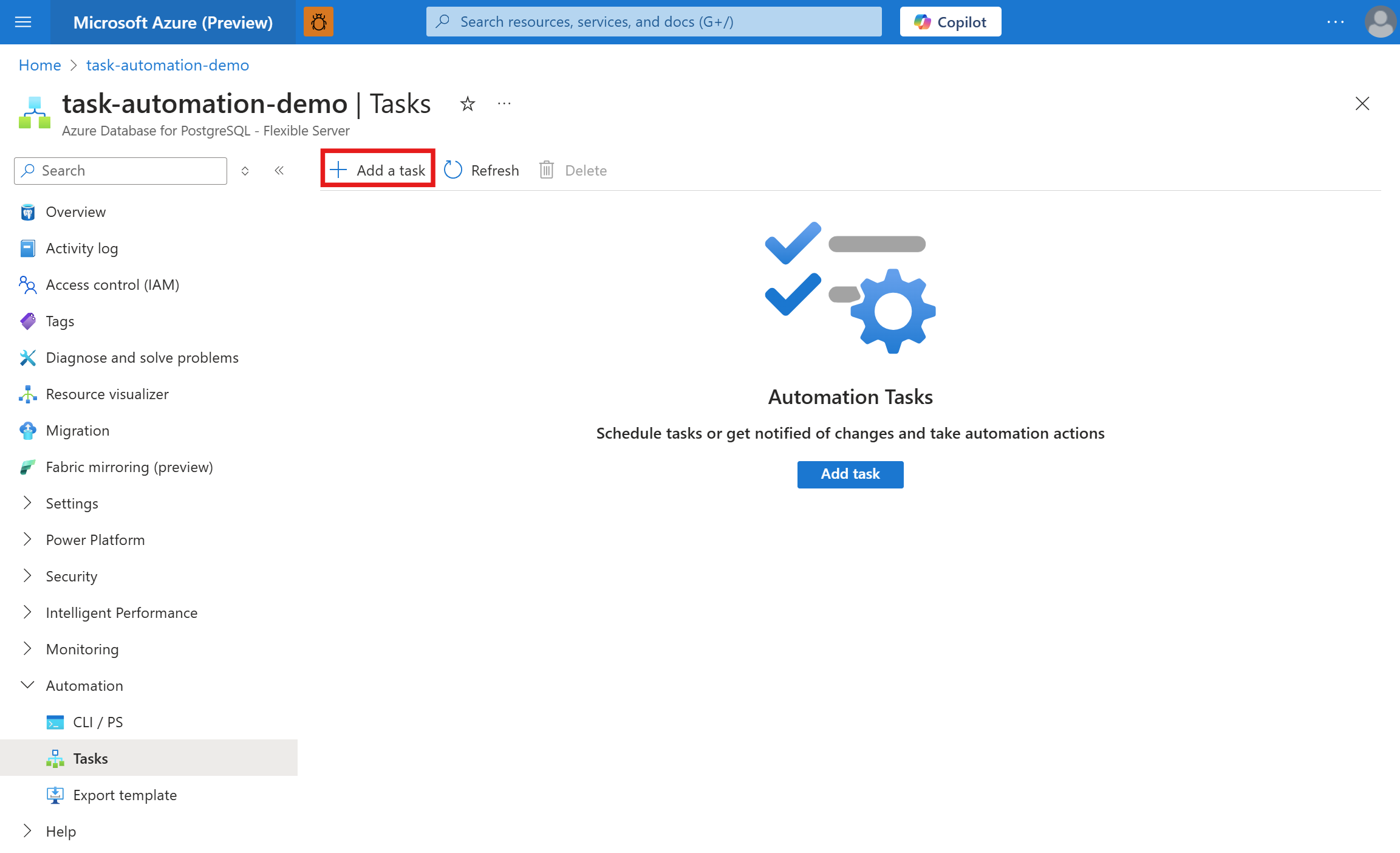 빠른 시작: 자동화 작업을 사용하여 Azure Database for PostgreSQL 관리