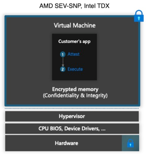 Azure Confidential Compute 가상 머신과 Azure 기밀 컴퓨팅을 비교해 보겠습니다.