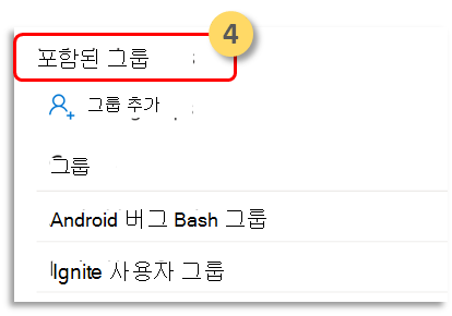 포함된 그룹을 선택합니다. 그런 다음 관련 그룹을 추가합니다.