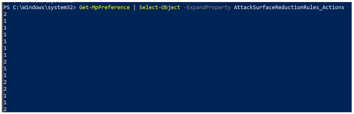 Get-MPPreference | Select-Object -ExpandProperty AttackSurfaceReductionRules_Actions
