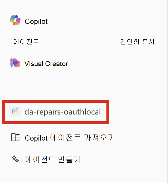 측면 패널에서 da-repairs-oauthlocal 에이전트를 선택합니다.