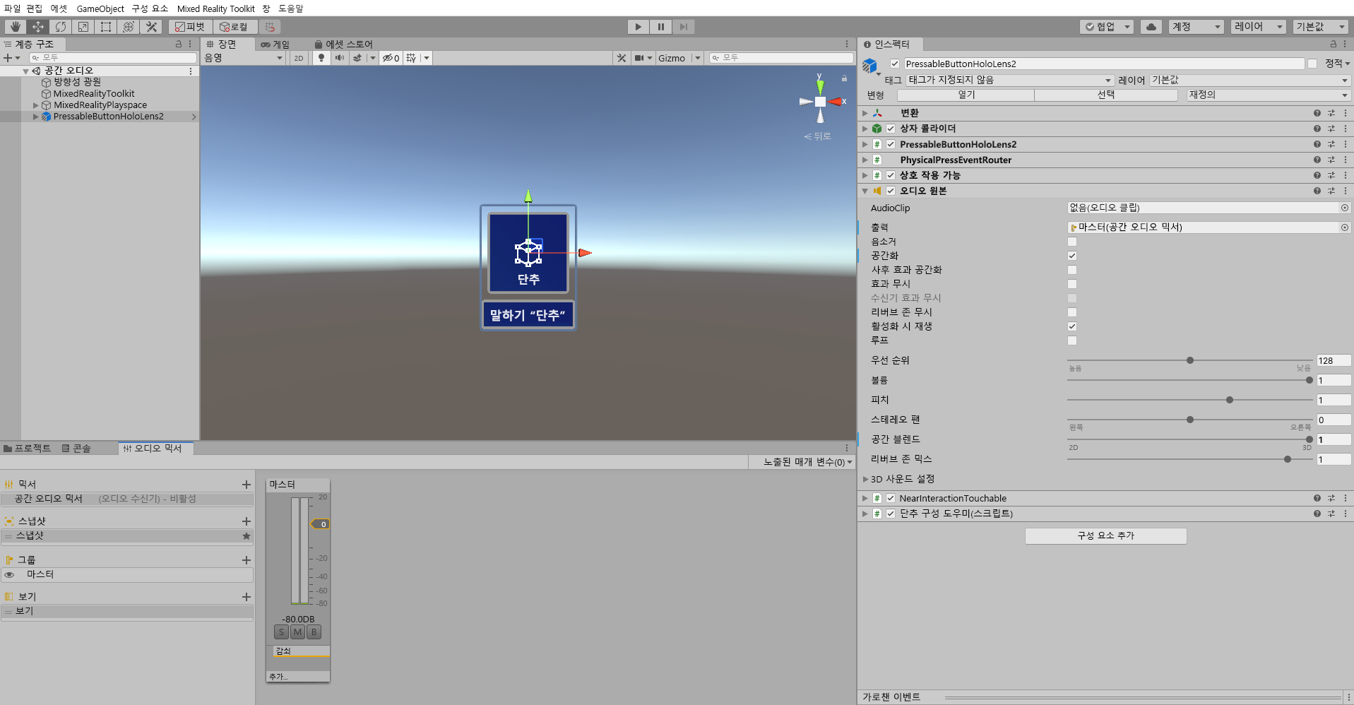 이 단원에서는 단추 상호 작용 소리를 공간화하는 방법과 오디오 클립을 사용하여 공간화된 단추 상호 작용을 테스트하는 방법을 알아봅니다.