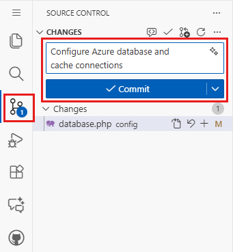 De implementatie heeft de connectiviteitsvariabelen voor u gegenereerd, al als app-instellingen. De best practice voor beveiliging is om geheimen volledig buiten App Service te houden. Verplaats uw geheimen naar een sleutelkluis en wijzig uw app-instelling in Key Vault-verwijzingen met behulp van ServiceConnectors.