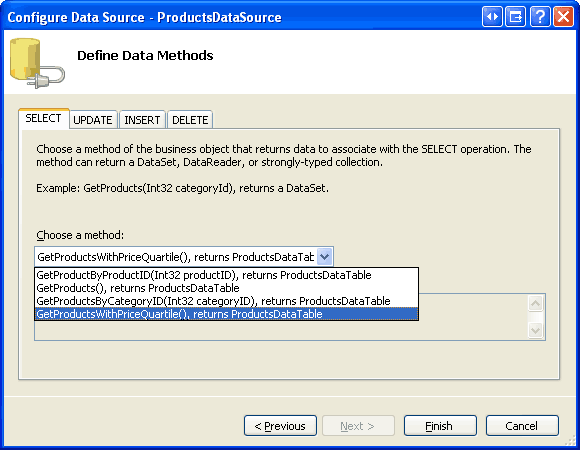 SelectMethod="GetProductsWithPriceQuartile"