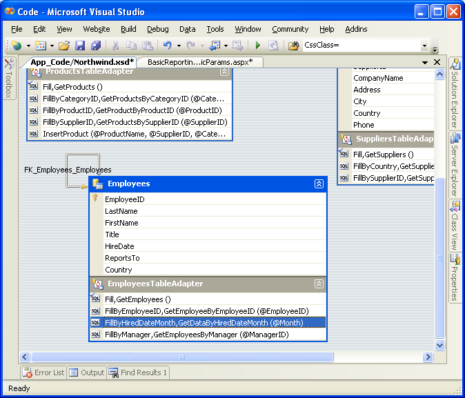 Wijzig ten slotte de FillBy en GetDataBy methodenamen naar respectievelijk FillByHiredDateMonth en GetEmployeesByHiredDateMonth.