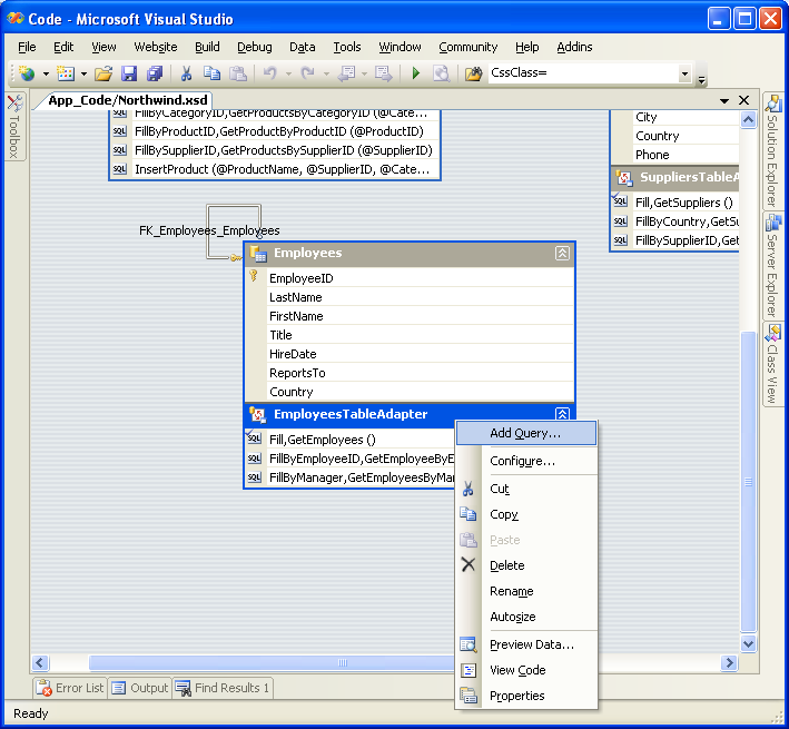 Afbeelding 2: Voeg een nieuwe query toe aan de EmployeesTableAdapter afbeelding (klik om de volledige afbeelding weer te geven)