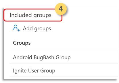 Selecteer Opgenomen groepen. Voeg vervolgens de relevante groepen toe.