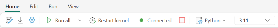 U kunt de meeste algemene functies op notitieblokniveau gebruiken. Raadpleeg de How to use Microsoft Fabric notebooks en Develop, execute, and manage Microsoft Fabric notebooks voor meer gedetailleerde informatie over het gebruik. Hier vermelden we enkele belangrijke mogelijkheden die specifiek zijn voor Python-scenario's.