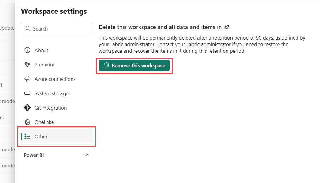 Selecteer In het deelvenster Werkruimte-instellingen de optie Overige>deze werkruimte verwijderen.