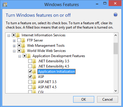 To support application initialization on your Web server, you must install the Application Initialization role or feature.