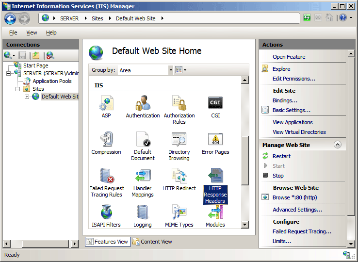 In the HTTP Response Headers pane, click Set Common Headers... in the Actions pane.