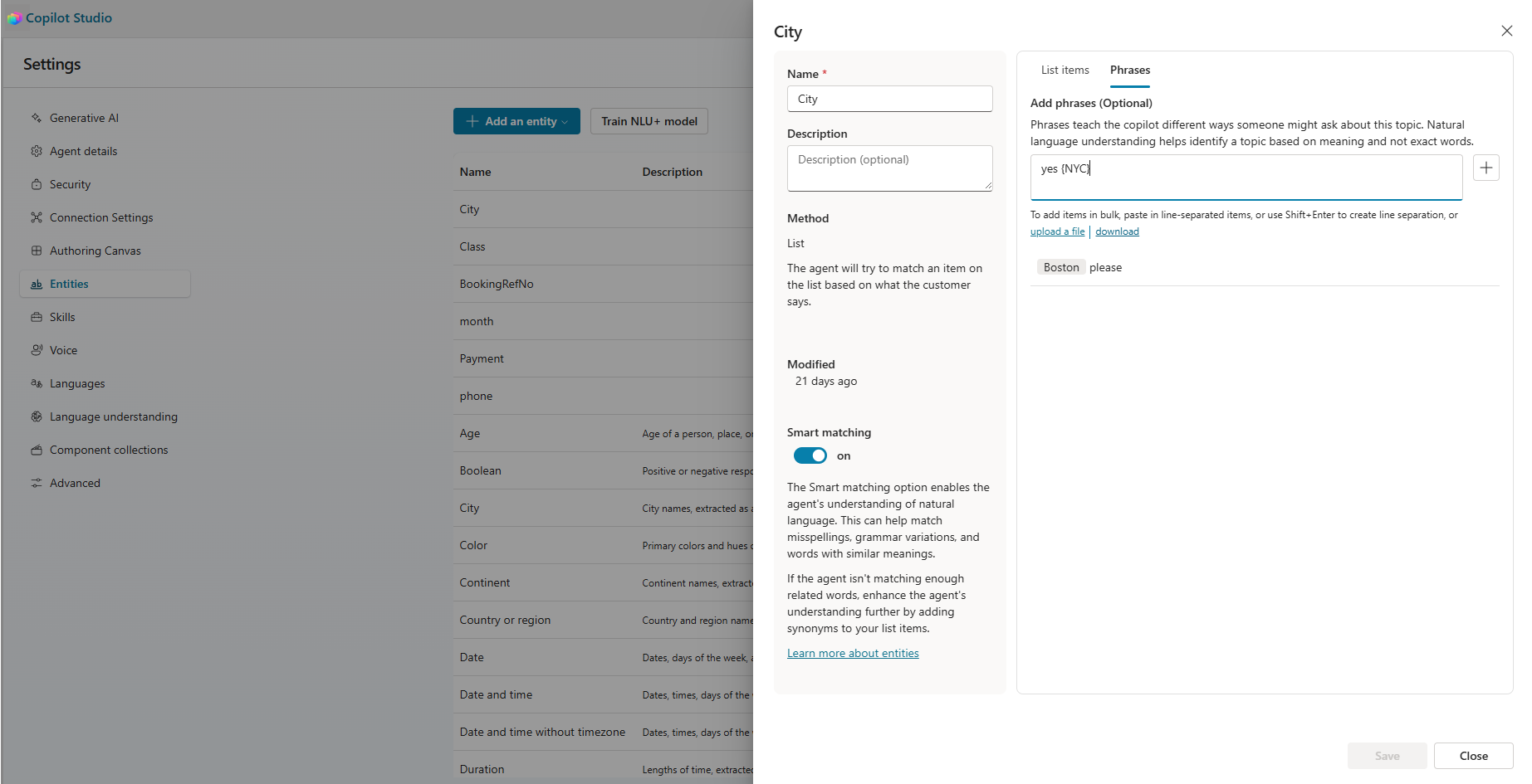 Voor NLU+worden lijstentiteiten beschouwd als gedeeltelijk open. Deze overweging betekent dat het model letterlijke entiteiten extraheert die niet expliciet in de lijst zijn gedefinieerd, zodat het model entiteitsgegevens kan verwerken die niet expliciet zijn gedefinieerd.