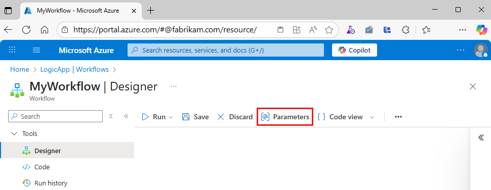 Jeśli musisz abstrahować wartości, które mogą ulegać zmianom w środowiskach deweloperskich, testowych i produkcyjnych w przepływach pracy, możesz zdefiniować parametry przepływu pracy. Jeśli używasz tych parametrów, a nie zmiennych specyficznych dla środowiska, możesz skupić się bardziej na projektowaniu logiki biznesowej przepływu pracy, a następnie wstawić zmienne specyficzne dla środowiska później.