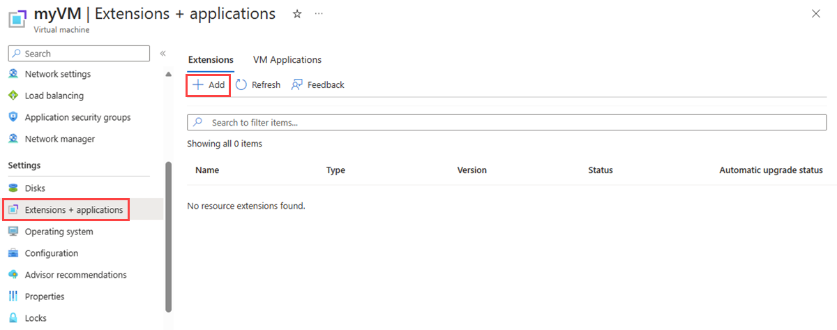 Na stronie maszyny wirtualnej w witrynie Azure Portal możesz wyświetlić zainstalowane rozszerzenie, wykonując następujące kroki: