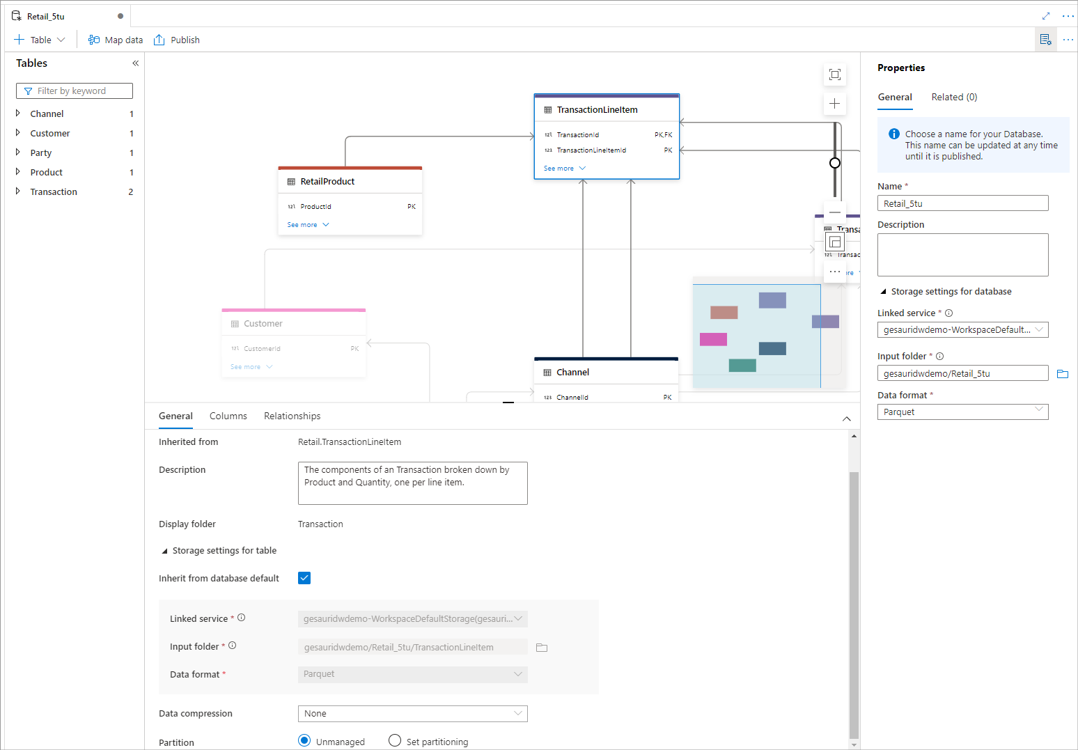 Aby zapisać układ i udostępnić go w usłudze Azure Synapse, opublikuj wszystkie zmiany. Ten krok umożliwia ukończenie konfiguracji bazy danych typu lake i udostępnienie jej wszystkim składnikom w usłudze Azure Synapse Analytics i poza nią.