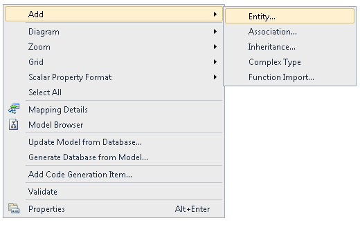 Otwórz plik SchoolModel.edmx , kliknij prawym przyciskiem myszy obszar niezakształcony w projektancie, wybierz polecenie Dodaj, a następnie wybierz pozycję Jednostka.