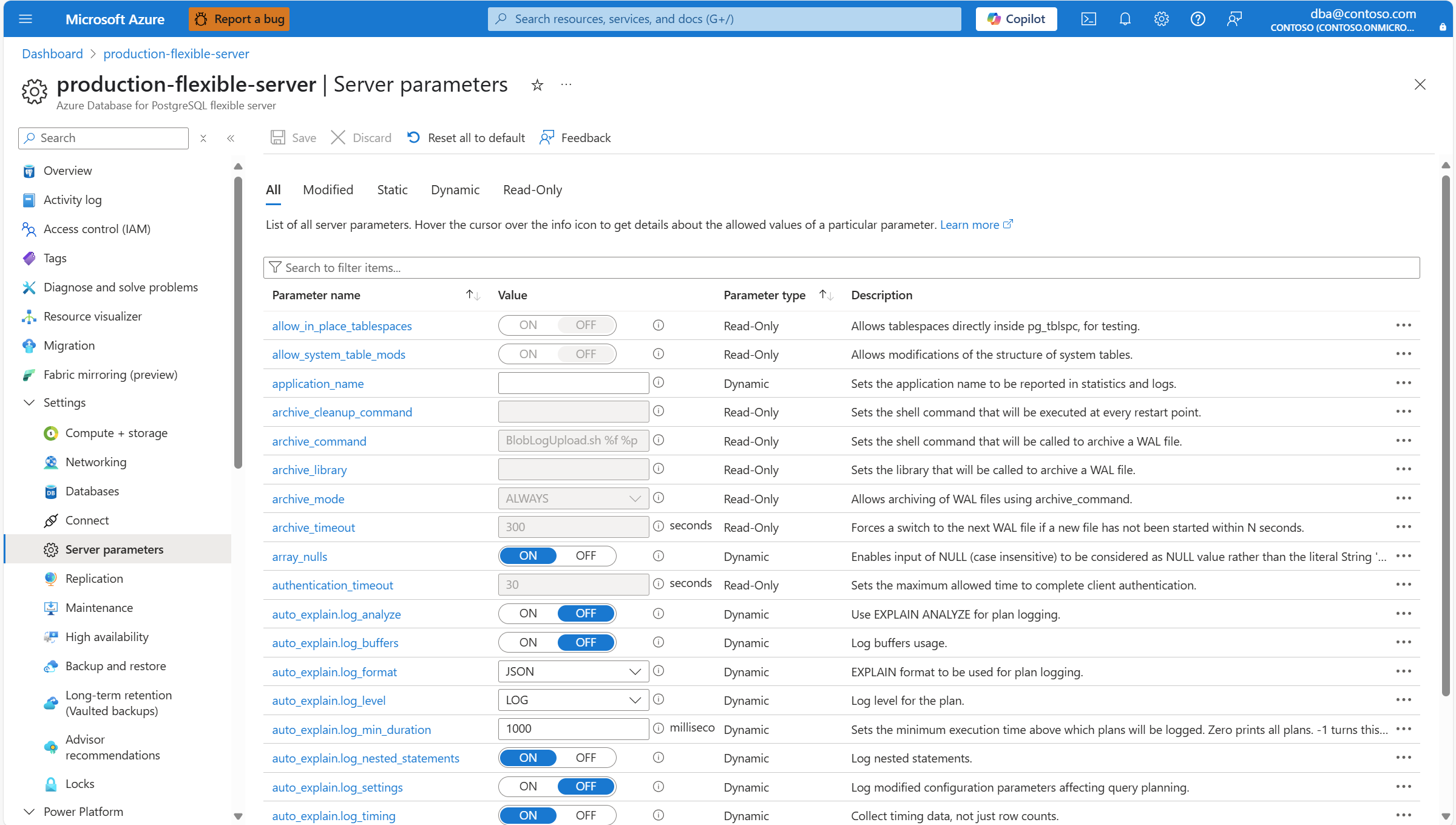 Ten artykuł zawiera instrukcje krok po kroku dotyczące wymieniania wszystkich parametrów usługi elastycznego serwera Azure Database for PostgreSQL.