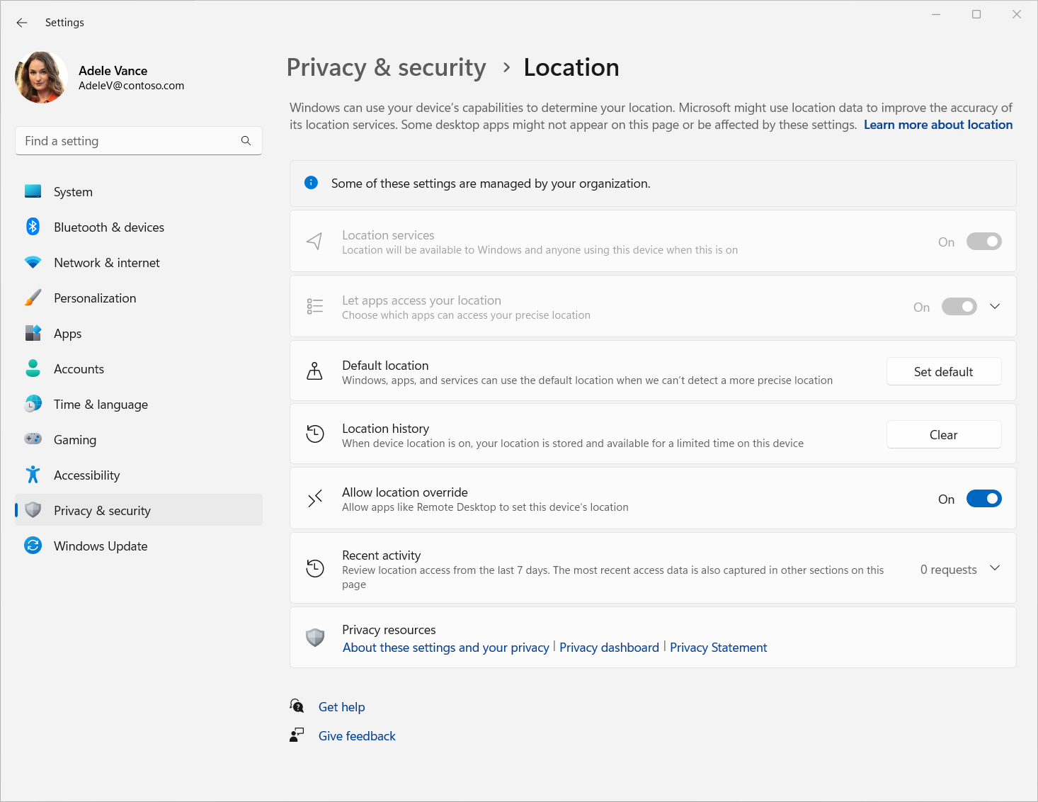W systemie Windows można włączyć usługi lokalizacji w aplikacji Ustawienia systemu Windows. Aby uzyskać więcej informacji, zobacz Usługa lokalizacji systemu Windows i prywatność. Kroki opisane w tym artykule, aby włączyć usługi lokalizacyjne w sesji zdalnej przy użyciu Intune i zasady grupy, można również zastosować do lokalnych urządzeń z systemem Windows.