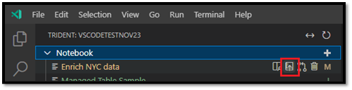 W Eksploratorze programu VS Code umieść kursor nad nazwą notesu, który chcesz opublikować w zdalnym obszarze roboczym; opcje są wyświetlane po prawej stronie nazwy, w tym opcji Publikuj .