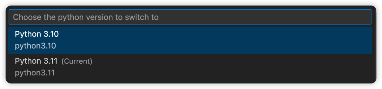 Wersję języka Python można znaleźć w prawym dolnym rogu paska stanu. Jeśli chcesz zaktualizować wersję języka Python, możesz wybrać numer wersji na pasku stanu. Możesz wybrać wersję języka Python z listy dostępnych wersji języka Python. Wybrana wersja języka Python jest używana podczas uruchamiania notesu w programie VS Code.