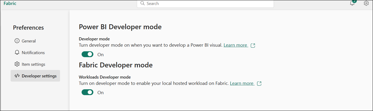 Krok 3. Włączanie funkcji deweloperów w usłudze Fabric