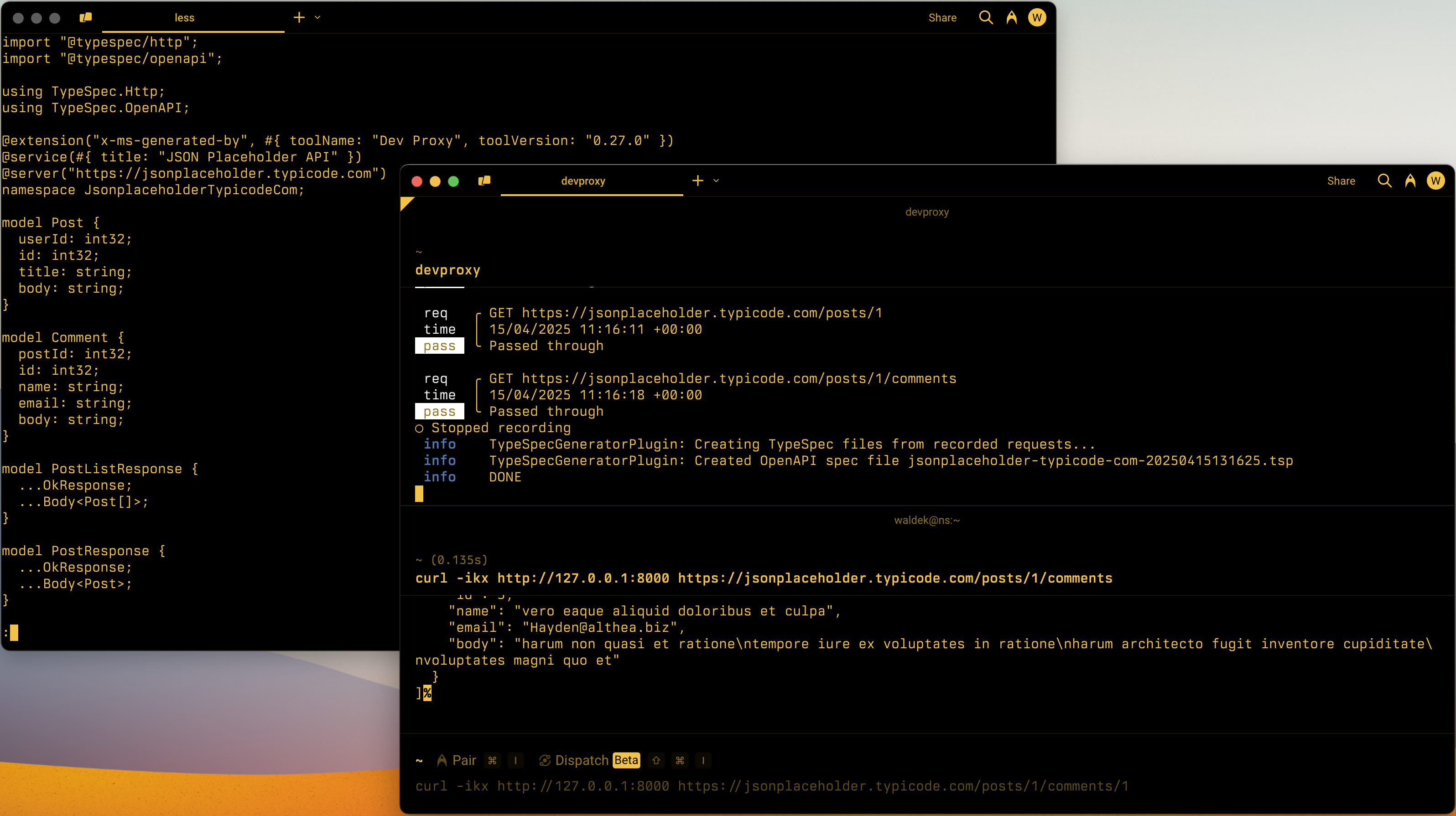 Generuje pliki TypeSpec z przechwyconych żądań i odpowiedzi.