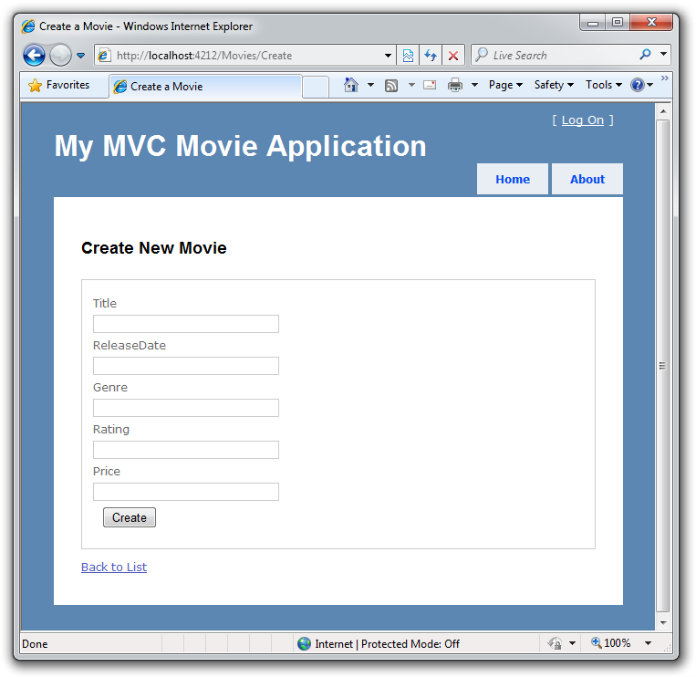 Vamos fazer nosso primeiro ASP.NET aplicativo Web MVC usando o Visual Web Developer 2010 Express. Criaremos um pequeno aplicativo de lista de filmes que nos permitirá criar e listar filmes.