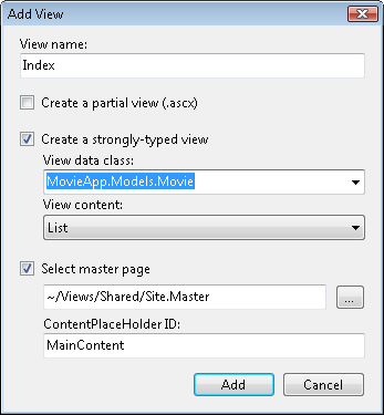 Depois de concluir essas etapas, o controlador na Listagem 1 é criado. Observe que ele contém métodos chamados Index, Details, Create e Edit. Nas seções a seguir, adicionaremos o código necessário para que esses métodos funcionem.