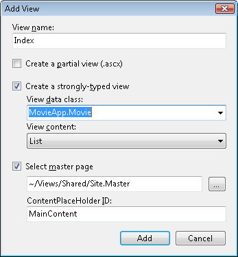 - Marque a caixa de seleção Criar uma exibição fortemente tipada.