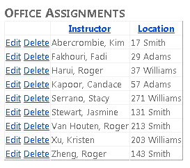 No tutorial anterior, você aprendeu a classificar e filtrar dados usando o ObjectDataSource controle e o Entity Framework. Este tutorial mostra opções para lidar com simultaneidade em um aplicativo Web ASP.NET que usa o Entity Framework. Você criará uma nova página da Web dedicada à atualização das atribuições do escritório do instrutor. Você lidará com problemas de simultaneidade nessa página e na página Departamentos que você criou anteriormente.