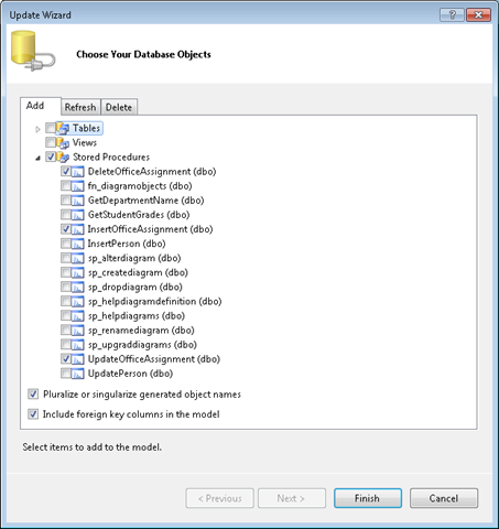 OfficeAssignmententidades. (As propriedades de acompanhamento e os procedimentos armazenados não precisam ser usados juntos; eles são apenas agrupados aqui para ilustração.) - Adicione métodos CRUD ao DAL e à BLL para