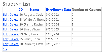 Execute a página Students.aspx e o novo aluno aparecerá na lista.